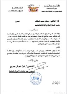 ومثلما ورد في المذكرة المرفقة، فإن تأخر البت في بلاغ يتعلق بإهدار أموال ضخمة من الوديعة المالية السعودية المحفوظة لدى البنك المركزي اليمني يُثير قلقاً مشروعاً حول مدى فعالية الإجراءات المتخذة، ويضع علامات استفهام أمام أداء الأجهزة المعنية بإنفاذ القانون.